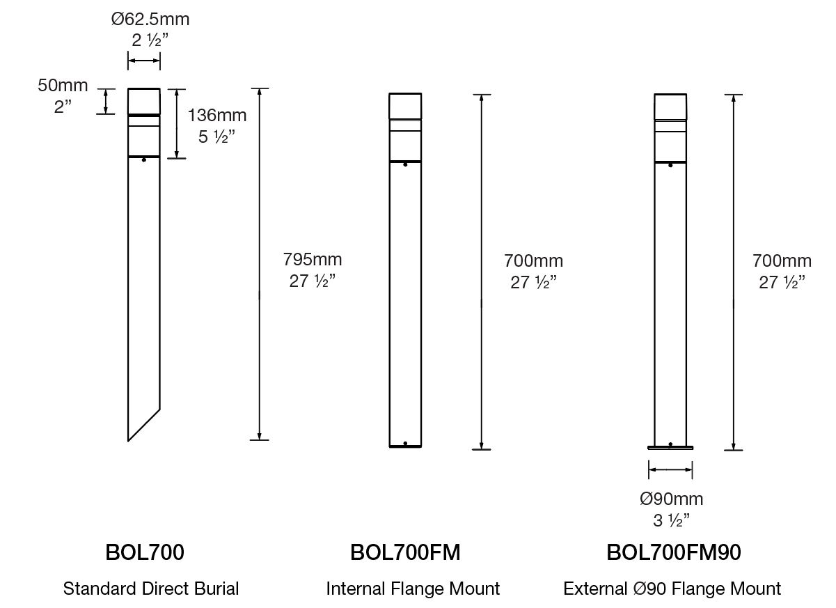 The Bollard 700 is ideal for bordering gardens, driveways, walkways, car parks, etc. The lens has a mirror finished, twin angle reflector and UV stable acrylic lens with anti-glare mesh. This lens reflects light at two angles, directly onto the ground and horizontally to illuminate the surrounding landscape.
