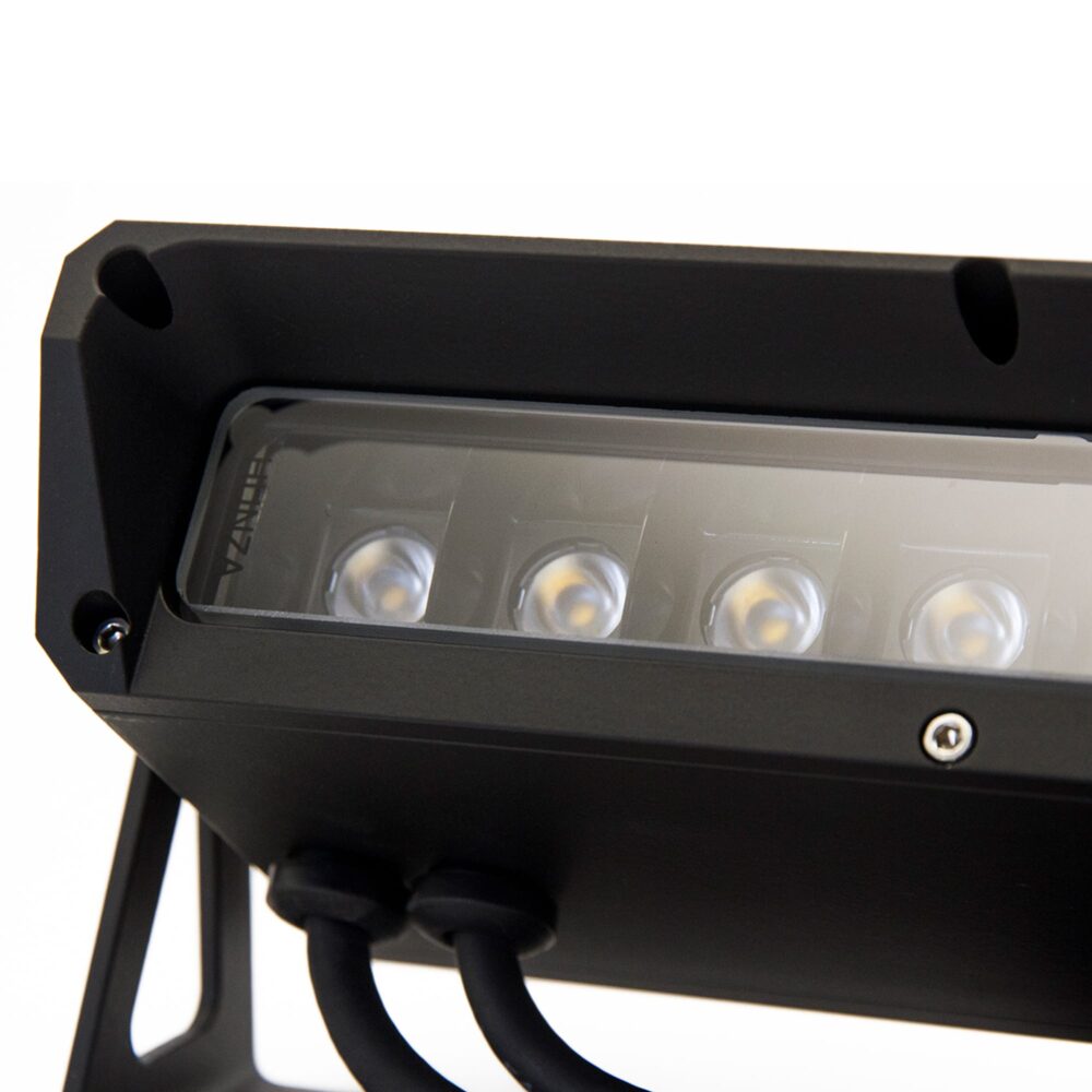 The Blade is a rectangular shaped projector. This makes it ideal to use as a surface grazing light or wall washer. The Blade’s linear design means the projected light has a square edge rather than a scalloped shaped beam. Other features include built in glare reduction, anti-syphon and IP68 water protection.
