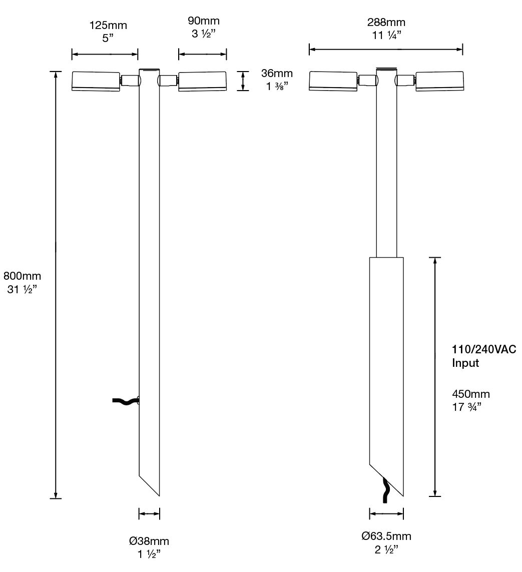 The Twin Border Light is ideal for path lighting, giving a wide spread of light with no upward projection. The fully adjustable arms allow 360 degree rotation and 0-90 degree elevation. Each luminaire is supplied with a frosted glass lens to further reduce glare.