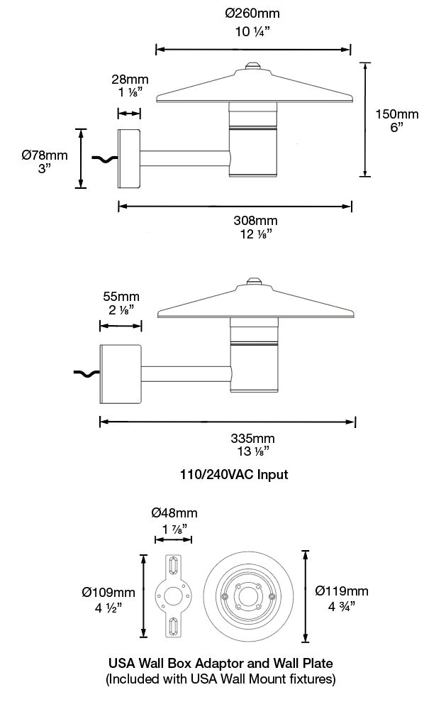 This fitting is the wall-mountable version of the Tier Light. It provides 360 degree illumination on a horizontal plane without projecting vertical light. It is ideal for lighting areas like porches and entrance ways.