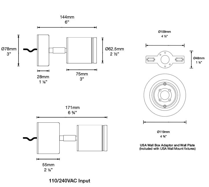 The Wall Spot has been designed to be mounted onto walls and provide directional light for pathways and structural elements of a building. The spotlight can be aimed in any direction, with a fully adjustable knuckle allowing 360 degree rotation and 0-90 degree elevation.