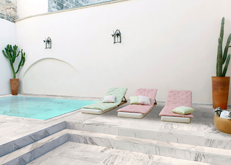Mythos includes 2 formats, 2 finishes, anti-slip or smooth, and all the Rosa Gres construction solutions for pools, terraces and indoor spaces.
